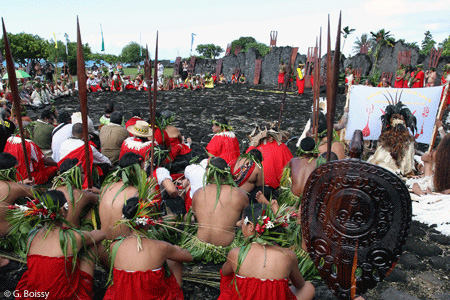Today, this marae has become a pilgrimage site for Maoris and Hawaiians. It is a place for international meeting. Every two years it hosts numerous polynesian delegations who come to represent their ancestors at the festival : Maori, Caledonian, Samoan, Hawaiian, Vanuatu…
