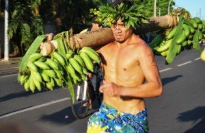 Originally the Tu’aro Mahoi: Based from the elements of the surrounding environment to sublimate the body and its phenomenal strength. Stone lifting is the perfect illustration of this basic principle. The selected stones for the competition are not easily lifted in one go, smooth as eggs and of massive, dense rock. Some athletes, like the “giant of Tubuai” manage to hoist the massive stones weighting over 160 kilos on their shoulder! The show is awesome.